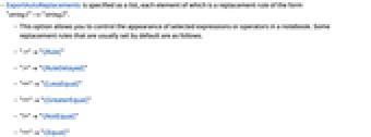 - This option allows you to control the appearance of selected expressions or operators in a notebook. Some replacement rules that are usually set by default are as follows.