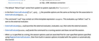 StartExternalSession ExternalFunction ExternalObject ExternalOperation RunProcess ExternalEvaluators WebExecute URLExecute RegisterExternalEvaluator EmbedCode TemplateExpression