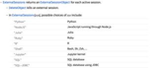 Wolfram Research (2017), ExternalSessions, Wolfram Language function, https://reference.wolfram.com/language/ref/ExternalSessions.html (updated 2020).