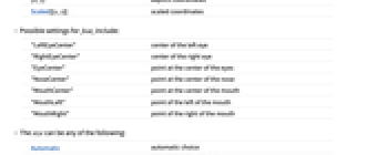 Automatic use the default reference {x,y} explicit coordinates Scaled[{x,y}] scaled coordinates - Possible settings for feati include: