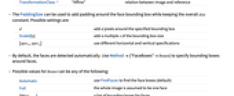 PaddingSize None how much padding to leave around the face Method Automatic method to use Padding "Fixed" padding scheme to use PerformanceGoal "Speed" aspects of performance to try to optimize Resampling Automatic resampling method TransformationClass "Affine" relation between image and reference - The PaddingSize can be used to add padding around the face bounding box while keeping the overall size constant. Possible settings are: