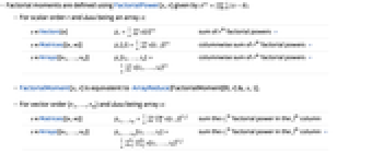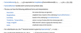 - FactorialMoment handles both numerical and symbolic data.
