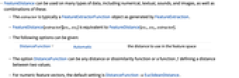 - FeatureDistance[extractor][ex1,ex2] is equivalent to FeatureDistance[ex1,ex2,extractor].