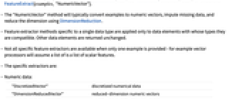 - The "NumericVector" method will typically convert examples to numeric vectors, impute missing data, and reduce the dimension using DimensionReduction.