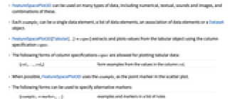 - FeatureSpacePlot3D[Tabular[…]cspec] extracts and plots values from the tabular object using the column specification cspec.