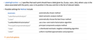 Automatic automatically chosen method "LatentSemanticAnalysis" latent semantic analysis method "Linear" automatically choose the best linear method "LowRankMatrixFactorization" use a low-rank matrix factorization algorithm "PrincipalComponentsAnalysis" principal components analysis method "TSNE"