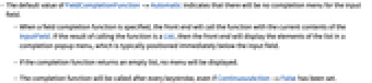 - The completion function will be called after every keystroke, even if ContinuousAction->False has been set.