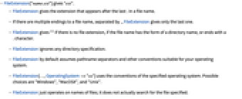 - FileExtension by default assumes pathname separators and other conventions suitable for your operating system.