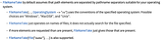 - FileNameTake[…,OperatingSystem->"os"] uses the conventions of the specified operating system. Possible choices are "Windows", "MacOSX", and "Unix".