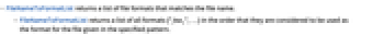 - FileNameToFormatList returns a list of file formats that matches the file name.