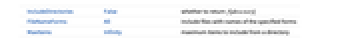 IncludeDirectories False whether to return f[directory] FileNameForms All include files with names of the specified forms MaxItems Infinity maximum items to include from a directory