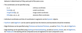 {x,y} ordinary coordinates Scaled[{x,y}] scaled coordinates ImageScaled[{x,y}] image scaled coordinates Offset[{dx,dy},{x,y}] absolute offset coordinates - Individual coordinates and lists of coordinates in segments can be Dynamic objects.
