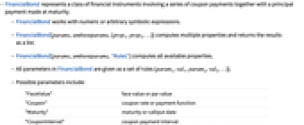 - FinancialBond works with numeric or arbitrary symbolic expressions.