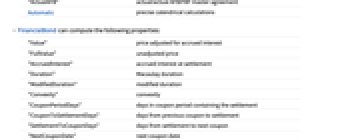 - FinancialBond[params,ambientparams,"Rules"] computes all available properties.