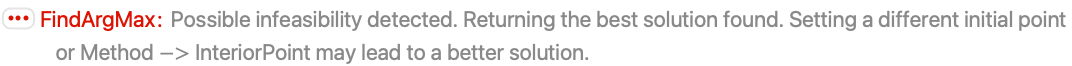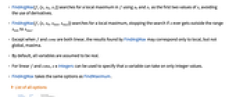- Except when f and cons are both linear, the results found by FindArgMax may correspond only to local, but not global, maxima.