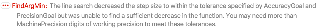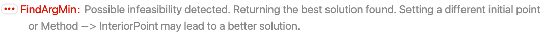 - Except when f and cons are both linear, the results found by FindArgMin may correspond only to local, but not global, minima.