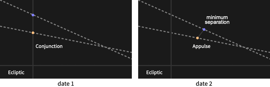 However, the angular distance between the planets is minimal on the instant of appulse: