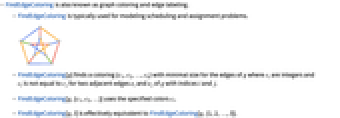 - FindEdgeColoring is typically used for modeling scheduling and assignment problems.