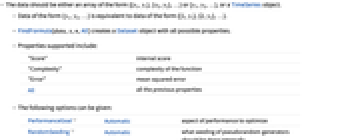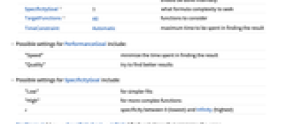 TargetFunctions All functions to consider TimeConstraint Automatic maximum time to be spent in finding the result - Possible settings for PerformanceGoal include: