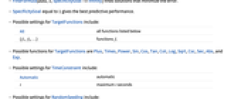 - Possible functions for TargetFunctions are Plus, Times, Power, Sin, Cos, Tan, Cot, Log, Sqrt, Csc, Sec, Abs, and Exp.