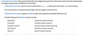 - FindGraphCommunities supports a Method option that specifies the detailed method to use.