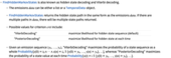 - FindHiddenMarkovStates is also known as hidden state decoding and Viterbi decoding.