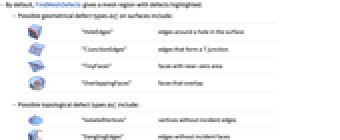 - By default, FindMeshDefects gives a mesh region with defects highlighted.