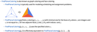 - FindPlanarColoring is typically used for modeling scheduling and assignment problems.