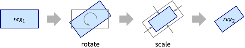 - FindRegionTransform[reg1,reg2] gives the affine transformation that maps reg1 to reg2.