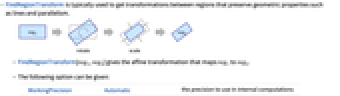 - FindRegionTransform is typically used to get transformations between regions that preserve geometric properties such as lines and parallelism.
