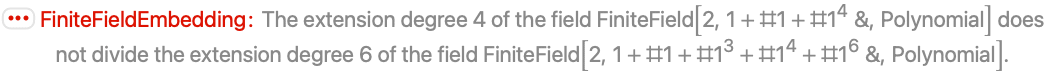 Wolfram Research (2023), FiniteFieldEmbedding, Wolfram Language function, https://reference.wolfram.com/language/ref/FiniteFieldEmbedding.html.