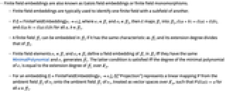 - Finite field embeddings are typically used to identify one finite field with a subfield of another.