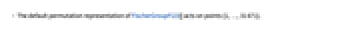 with three elements. Along with the other sporadic simple groups, the Fischer groups played a foundational role in the monumental (and complete) classification of finite simple groups. - The usual group theoretic functions may be applied to FischerGroupFi23[], including GroupOrder, GroupGenerators, GroupElements and so on. However, due its large order, a number of such group theoretic functions may return unevaluated when applied to it. A number of precomputed properties of the Fischer group
