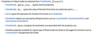 - Possible properties available for a given type of fitted model are listed on the pages for functions such as LinearModelFit that generate the model.