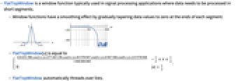 - Window functions have a smoothing effect by gradually tapering data values to zero at the ends of each segment.