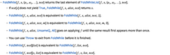 - FoldWhile[f,test][x,list] is equivalent to FoldWhile[f,x,list,test].