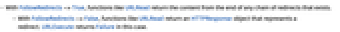 - With FollowRedirects->False, functions like URLRead return an HTTPResponse object that represents a redirect. URLExecute returns Failure in this case.