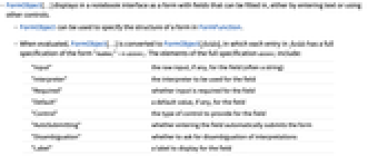 - FormObject[…] displays in a notebook interface as a form with fields that can be filled in, either by entering text or using other controls.