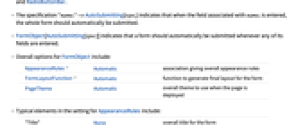 - FormObject[AutoSubmitting[spec]] indicates that a form should automatically be submitted whenever any of its fields are entered.