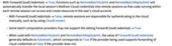 - When used with RemoteBatchSubmit and RemoteBatchMapSubmit, the value of ForwardCloudCredentials generally defaults to Automatic, which corresponds to True if the provider being used supports forwarding of cloud credentials or False if the provider does not.