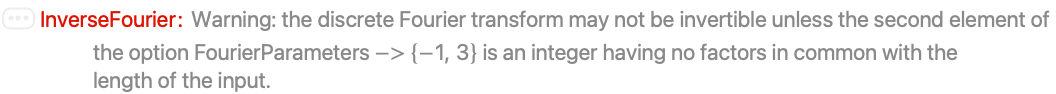 The same FourierParameters values need to be used for both forward and inverse transforms: