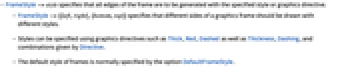 - FrameStyle->style specifies that all edges of the frame are to be generated with the specified style or graphics directive.
