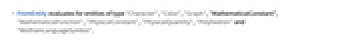 - FromEntity evaluates for entities of type "Character", "Color", "Graph", "MathematicalConstant", "MathematicalFunction", "PhysicalConstant", "PhysicalQuantity", "Polyhedron" and "WolframLanguageSymbol".