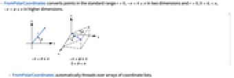 in higher dimensions. - FromPolarCoordinates automatically threads over arrays of coordinate lists.