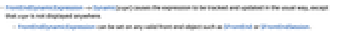 - FrontEndDynamicExpression->Dynamic[expr] causes the expression to be tracked and updated in the usual way, except that expr is not displayed anywhere.