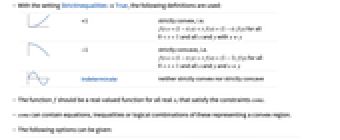 Wolfram Language. (2020). FunctionConvexity. Wolfram Language & System Documentation Center. Retrieved from https://reference.wolfram.com/language/ref/FunctionConvexity.html