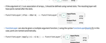 - If the argument of f is an association of arrays, f should be defined using named slots. The resulting layer will have ports named after the slots.