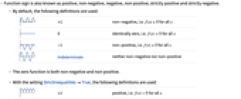 - Function sign is also known as positive, non-negative, negative, non-positive, strictly positive and strictly negative.