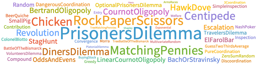 "MatrixGame" matrix games (simultaneous, normal form) "TreeGame" tree games (sequential, extensive form) - Games in different application domains: