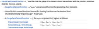 - GaugeFaceElementFunction->f specifies that the gauge face element should be rendered with the graphics primitives given by f[region,values].